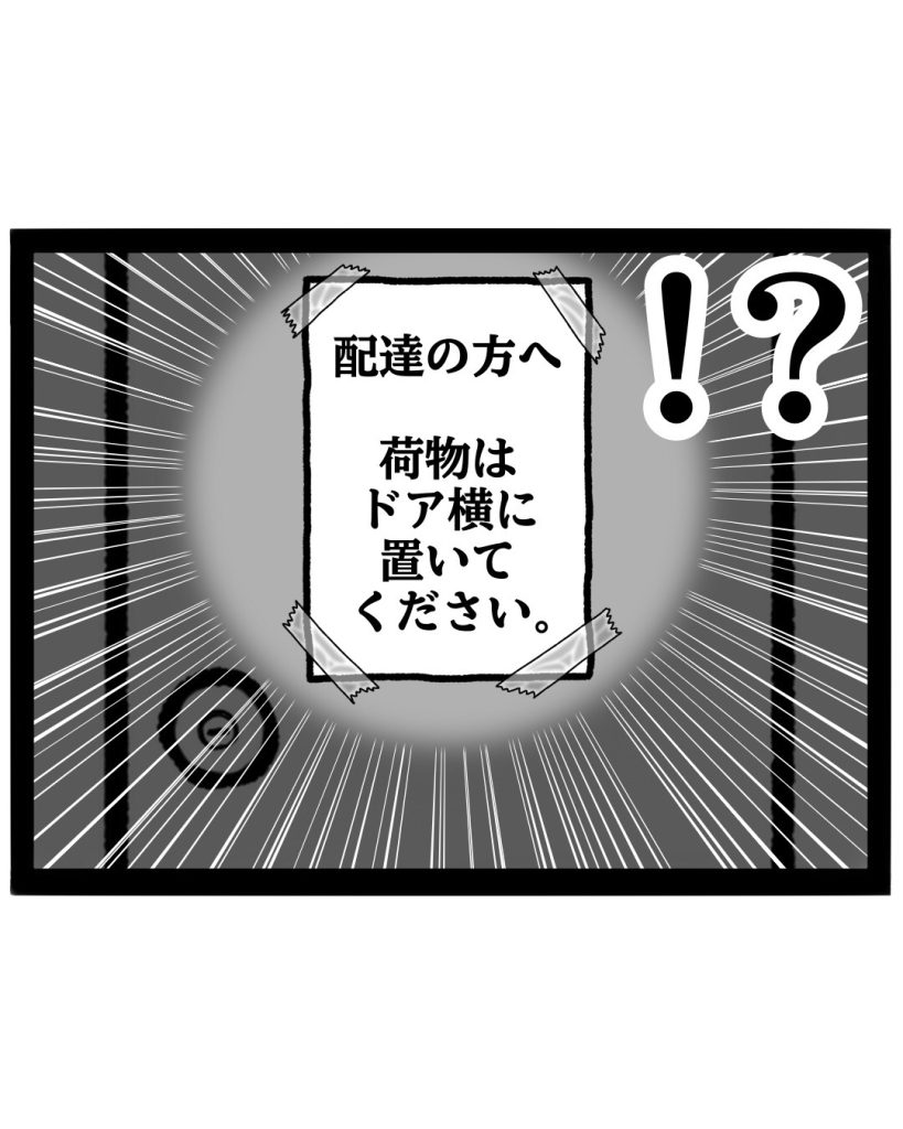 たまにこの4コマ漫画のように「配達員さんへ 荷物はドアの横に置いてください。」とメモが貼ってあたりします。